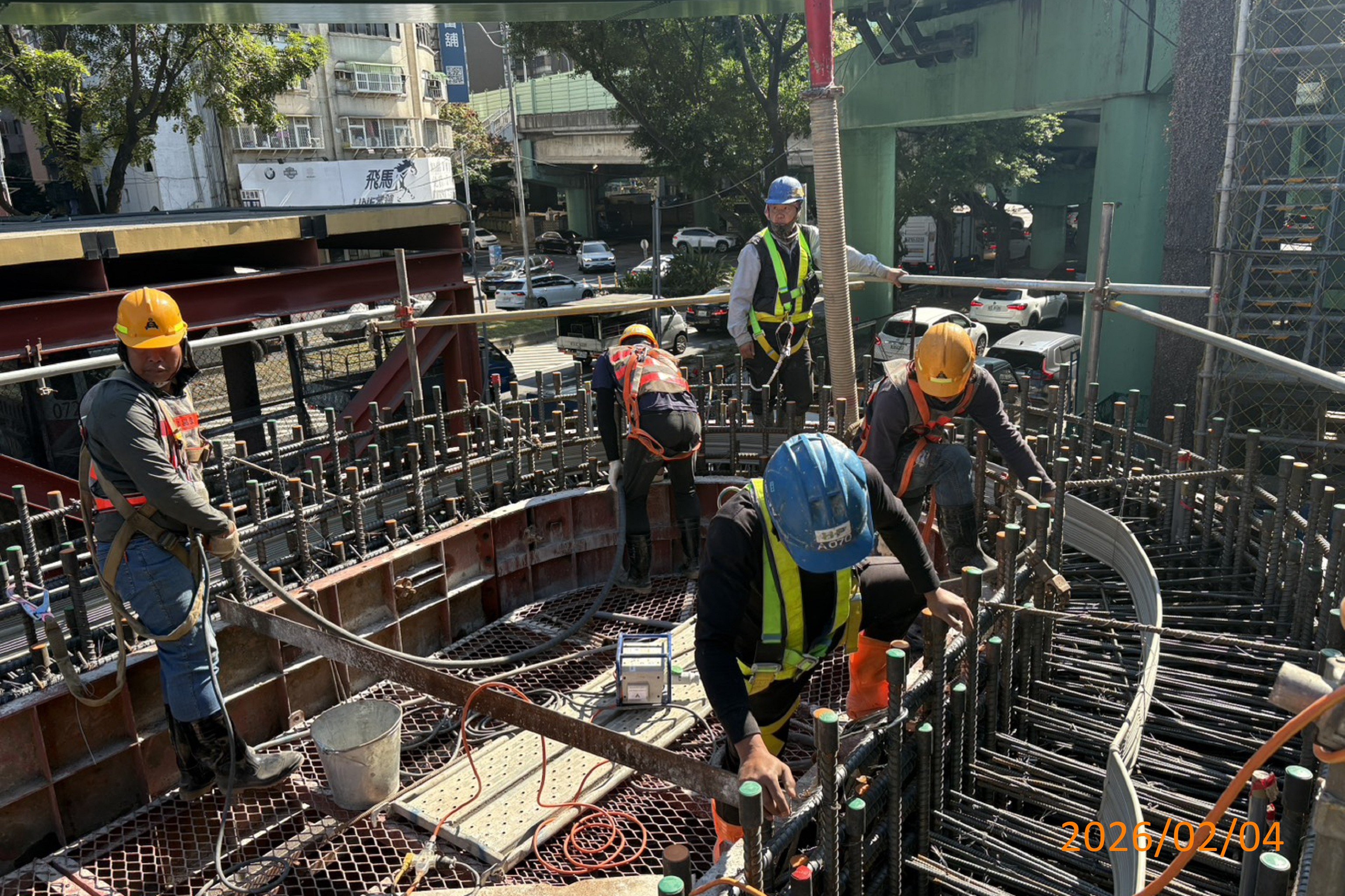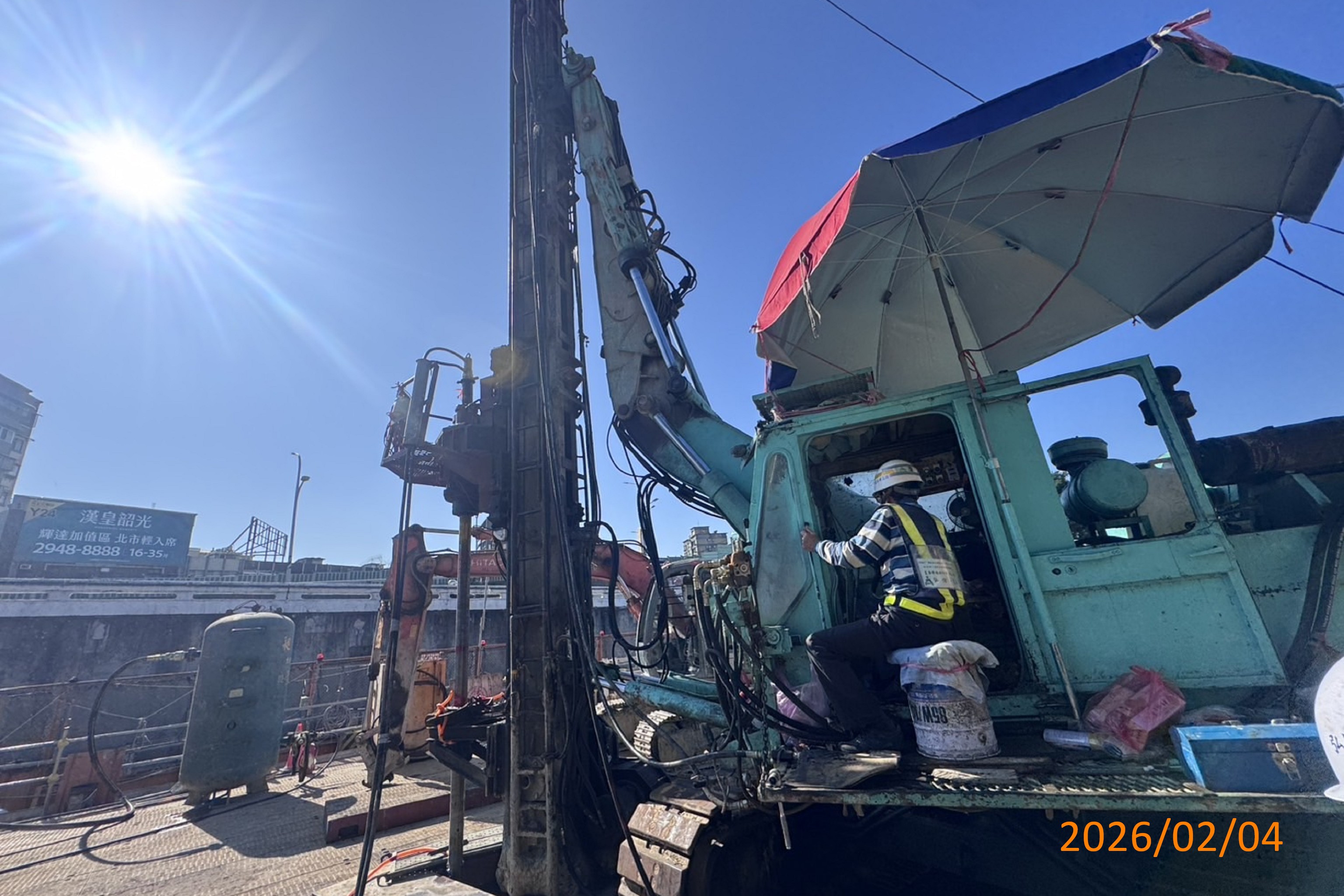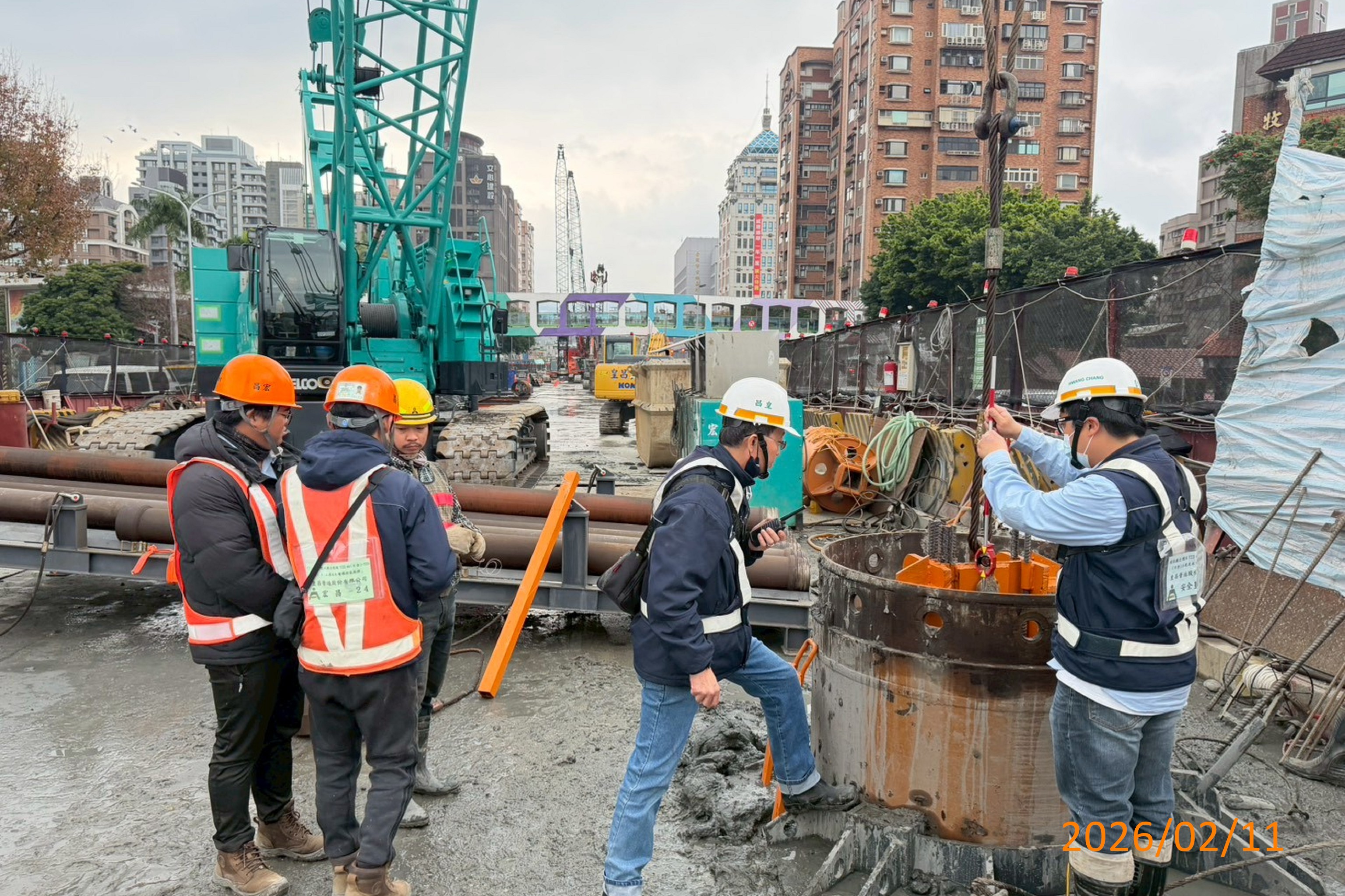 袋式儲車軌西側P2-3中間樁鑽掘、型鋼吊放、混凝土澆置