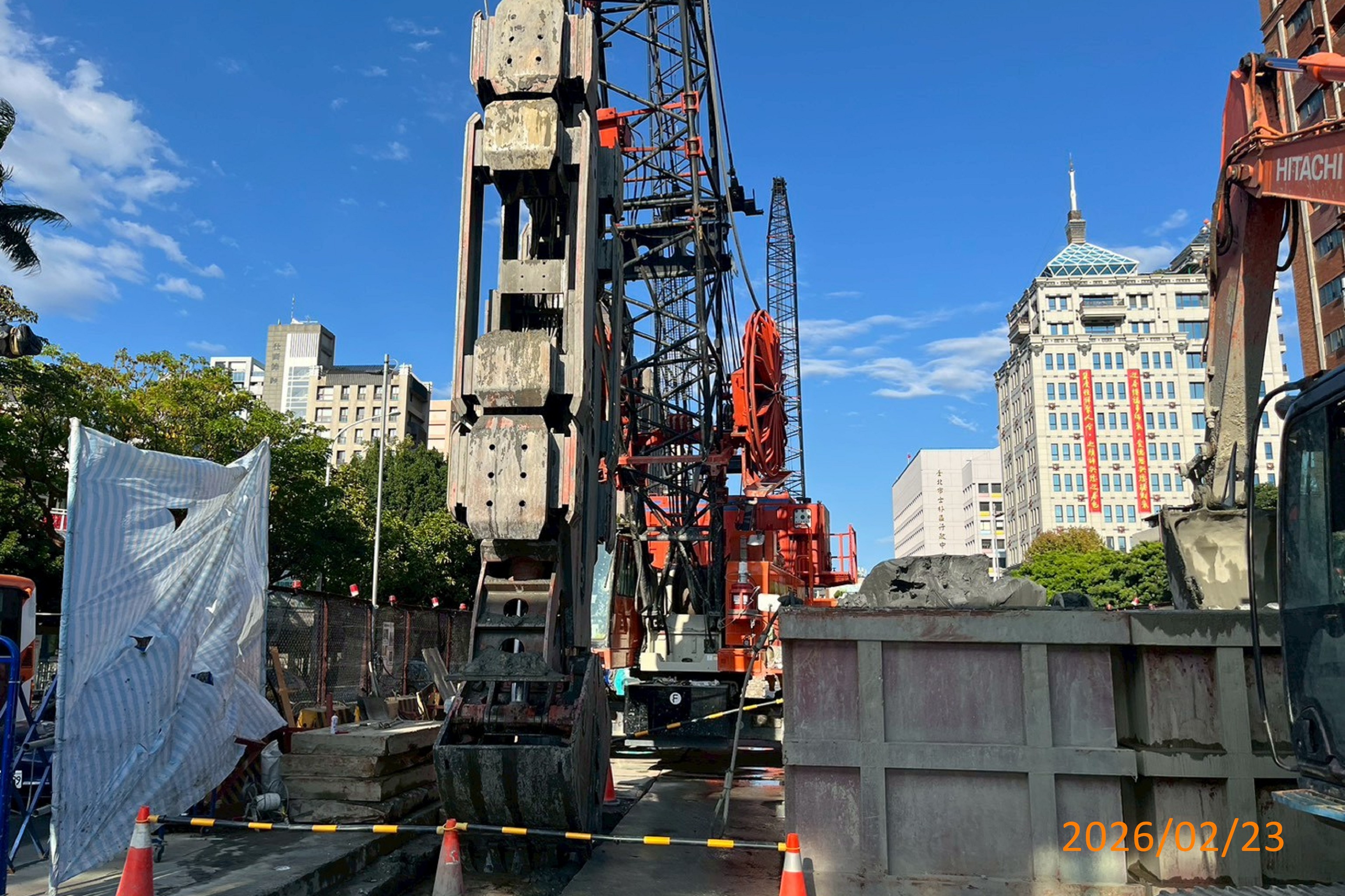 袋式儲車軌東側B29單元連續壁沉泥抓掘、鋼筋籠吊放、混凝土澆置