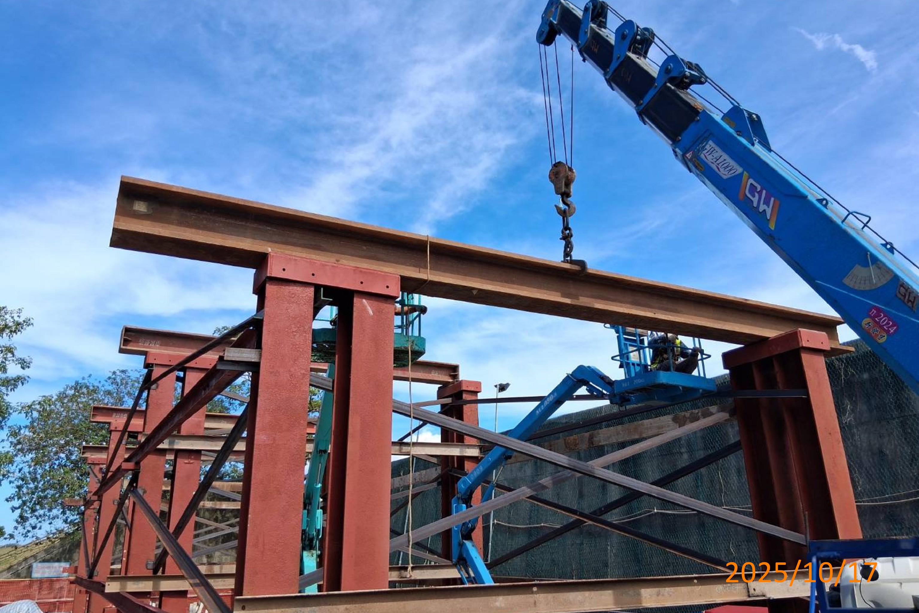 逃生豎井A(三重端)堤內鋼便橋大樑、水平交叉繫材施作